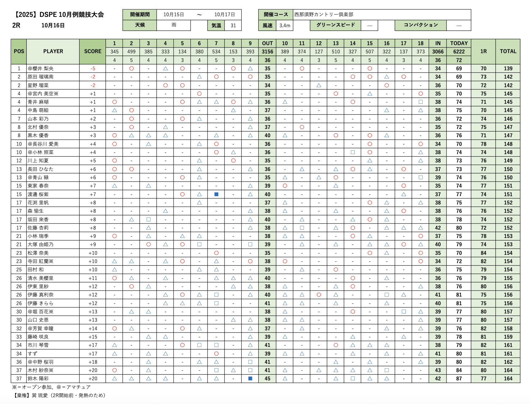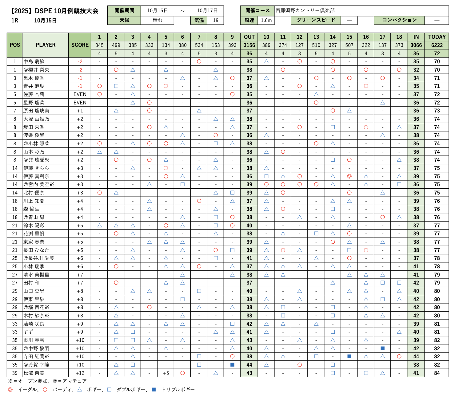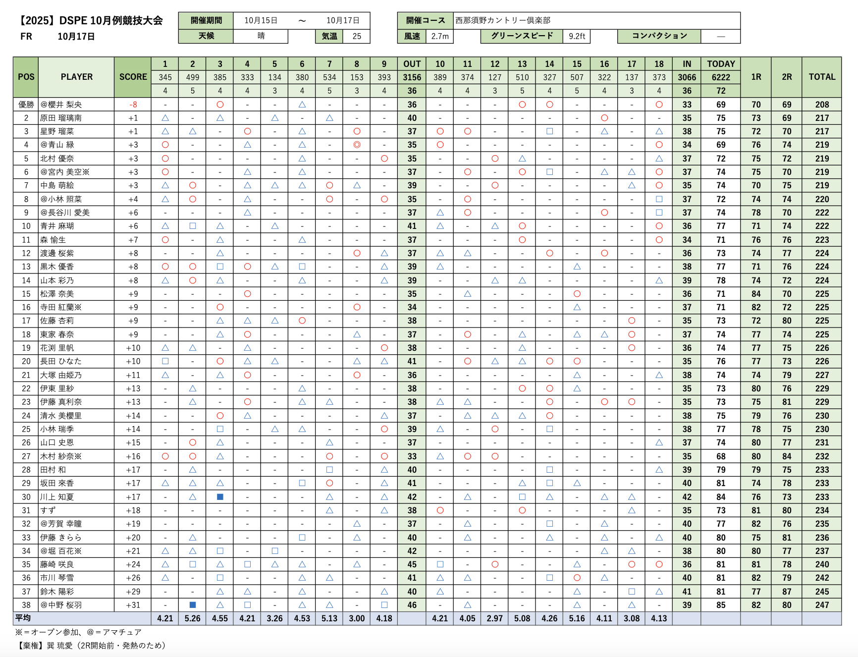 10/14〜17に栃木県の西那須野カントリー倶楽部にて2025年度第7回DSPE月例競技会を開催しました。